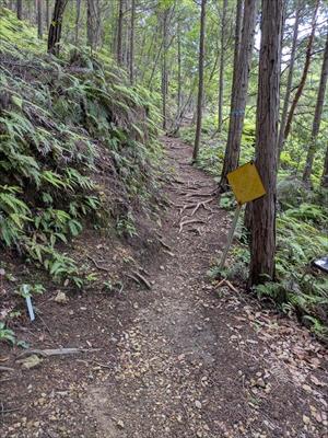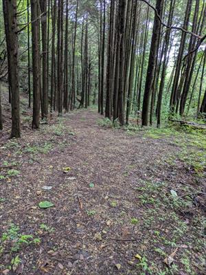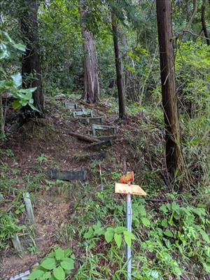 | 雨もやみ、千畳敷を超えて月見亭から西コースに向かう 所々の見晴らしは最高で、道も低山とは思えない風化した道は楽しい ![]() 千畳敷から小屋谷山頂の鉄塔が見える 雨の様子でルート変更は有るが、小屋谷の頂きまで行こうと決める 途中の道は感じが良いが、下りはやや険路で滑り注意だ 小屋谷頂上で行き先を決める 先の鉄塔から鉄塔道が有ればそれを下ろうと決めた 鉄塔道後は少しは残っていたが、道は消えている 多分廃道だろうと西コースに沿う ![]() 道は良いが登山者は少なそうだ 関電道は変更されたようで道は続く 下り切れば林道に出た 車道に出る手前にスケボーの施設が出て、若者が競技の練習をしていた 丁石道に向かう ![]() 高速下を通り回り込めば駐車場??が出てその前から丁石登山口が有る 道は広く町石が出る |