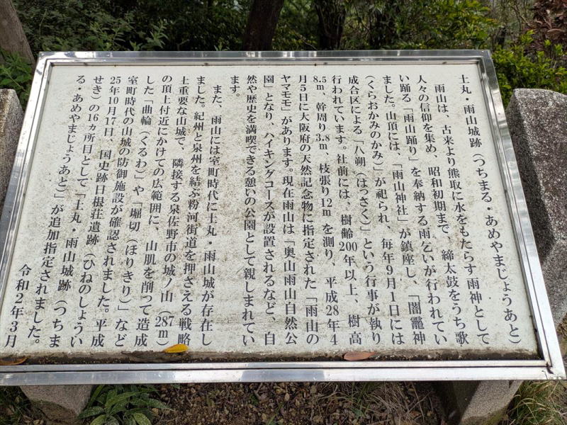 | 車道を渡り舗装の林道?を少し入れば、左手に関電の点検道の道標が出る これが急登で大汗を流した。 同行のsunaoさんは気にもしない傾斜だろうが、私に合わすのは相当な我慢だろう ![]() 登る途中に開ければ見晴らしは最高だ 関西空港や小富士山や日根荘園日本遺産の見晴らしは最高だ 登り切れば風化した花崗岩の道は雰囲気が良い ![]() 途中に岩稜コースの分岐は有るが案内は無い 道成に歩けば、土丸城の分岐に出きたての勝手道にマークが打たれていた 道標もないが、地形図から雨山山頂に行くだろうと判断して登ってみた 道は短いが、正式ルートの方が見どころは多かった ![]() 山頂の天然記念物のヤマモモ木の下に、植えられたのだろうランとシャクヤクが有った 山頂の小屋で休んでいれば、雨が降り出し約1時間の休憩で昼食を食べた ![]() 山頂に詳しく歴史が書かれている |