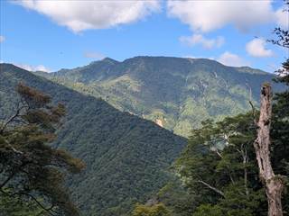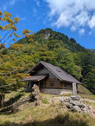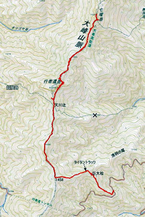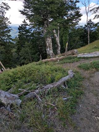 ![]() ![]() ![]() 90番ポストから階段で尾根に取りつく 杣道にテープが巻かれ登りよい 少し汗を流すが巨大桧をよくよく眺めれば、4本がまとまって生え、クワッド檜だとワイワイ 登り切り、タイタン上から景色を眺めれば、日本岳、小普賢岳、大普賢岳が大峰の姿を見せる ![]() ![]() ![]() タイタンは尾根下にある 倒木にタイタンチョップを打たれてからは傷みがひどい sunaoさんが荷台に乗ってみた 清明の尾はシロヤシオのトンネルを見せる 花芽はと見てみれば、種が実っていたし花芽らしいものも多い 来年も楽しみだ 1458ピークに登り、大峰縦走路を順峰で行者環小屋を目指す ![]() ![]() ![]() 各所でトリカブトが満開だがお花畑の囲いは花は少ない 毒芹やツリブネソウが咲く 弥山が朝日を受け綺麗で小屋の水タンクが見えた ![]() ![]() ![]() 天川辻は変わらないが、辻越えは出来そうにないと聞く 小屋の後ろに行者環岳がそびえ、中は綺麗に整備され 長く休憩をした |