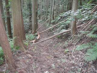 山道に成れば歩きよい小道が続きマウンティンバイクのルートも兼ねてはいたが今はそれを感じない 千早小学校生徒たちが千早古道の道標を作り整備した跡も残る ![]() ![]() ![]() 道にはマークや道標が有りヤマレコなど持てば先ずルート間違いは無いだろう トラバース道で細くなったところもあるが、そこは慎重に歩こう ![]() ![]() ![]() 千早古道の道標が出る所はトラバース道と尾根越え道の分岐で道標下にもどちらも行けると書かれている通りだ トラバース道は一年で生えこみ、二年も放棄すればササが密集する シルバーさんと、次回からの整備は山越えにしようと話し合うが、何時できる事やら 道成に歩き肩衛山分岐道標から肩衛山に向かった 久々だが、鉄塔管理道なのか通りよかった ![]() ![]() ![]() 途中から尾根に登るが直ぐ上が肩衛山の山頂だ ![]() ![]() 取りつきと山頂 引き返そうか回り込もうか、新しく尾根で行ってみようと地形図を見る 破線が載るコースが面白いと向かったが、コンパスをとらずここだろうで行けばアララ、尾根違いだった ![]() ![]() ![]() 破線は外したが千早古道には出た 正しい分岐を確認して千早大橋に向かう ![]() ![]() ![]() |