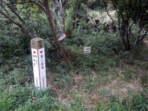 甲山下の椅子でロング休憩で、久々に山でコーヒーを飲んだ 何方が準備してくれたか感謝です 引き返す格好で尾根を通り猿坂峠に向かう 道は良すぎるほど良い ![]() ![]() 猿坂峠の見晴らし台から 猿坂峠のフェンス裏から西ノ庄堡塁に向かう ![]() ![]() ![]() マーク踏み跡は完璧です 堡塁は大きい 玄関から入ればいいが入り方を忘れて適当に入った ![]() ![]() ![]() 弾薬庫にはコウモリが住み、井戸跡にはマムシが入っていた 和歌山市内の製鉄所(旧住友製鉄)を守るためだったのだろうと思っているがさて 玄関から出て経塚二番に向かう マークに従うと書いておきます ![]() ![]() ![]() |