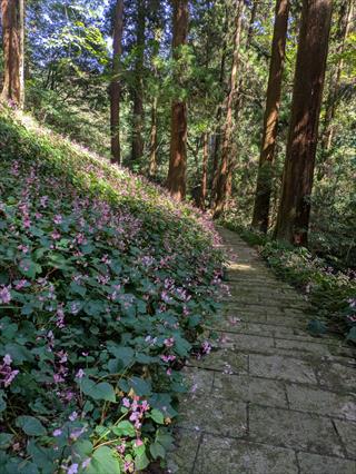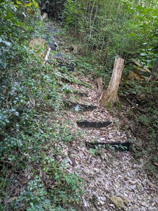 岩湧山に花を探しに行く予定とも知らずに、勝手に別山だと思い込み、地形図は別山を持っていた (^_^;) マア、岩湧山はほぼ全コ-スは頭に有るが、小さな地形の違いは記憶にない 第六駐車場に止め下り、ここに踏み跡があると道に向かえば、ヤハリ橋が有り直ぐに管理道とわかる ![]() ![]() ![]() 薄い踏み跡を追う 岩湧山でこれほど踏み跡が薄いコースも有るのだと急傾斜に息を切らす 地形を知るKさんはすぎこだちの道に出ると言うが、アノ急階段の道と思うだけで汗が出る ナルホドに出た 最初は思ったほどの急坂階段ではないが、階段は苦手だ 地形図が無い、ヤマレコ地形図ではどうやら管理道でも登れるようだ ![]() ![]() ![]() 道両脇の小枝が払われていた ボランティアさんかなと思ったが、草刈り機を使っているところから管理道の業者さんだろう 管理道分岐なら階段は無いだろうとか甘く考えて管理道をで登るが、考えは甘い 嫌いな階段のさらなる傾斜が出た ただ、登山道より階段の段差は無く距離も短い分良かったのかも 編笠山の尾根に出る ![]() ![]() ![]() 編笠山は通り過ぎやすい、ピークと言うより尾根だ 東タツガ岩に行った 元気な頃はこの尾根下からワイワイと編笠山にバリエーションで上り下りした記憶も濃い 見晴らしで、山座同定はやや忘れた部分もあるが略山頂はだろうで分かった 引き返し尾根を通らずに林道で下る ![]() ![]() ![]() 編笠山登山口に出て、車道か?林道に出た 経塚二番はパスだ お堂の横上で、ユックリとお昼を楽しむ 見える景色の同定は合っているのかそれは分からない ヤハリ地図は必要だ |