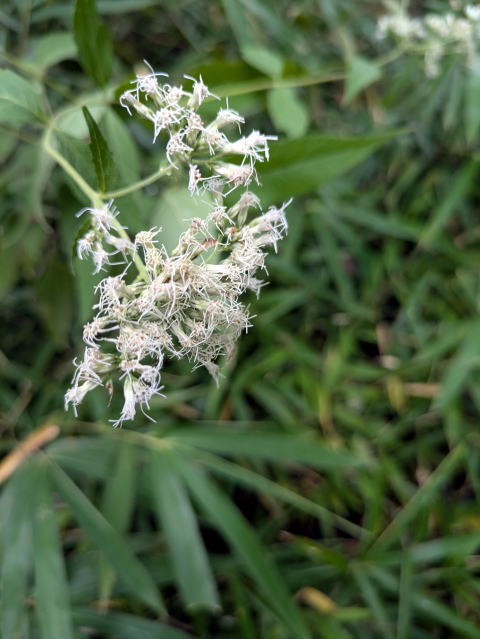 注意深く尾根を歩くが猛烈な蔓植物帯や棘のあるノイバラ等の所は右左と隙間を這う 動物の道もない ![]() ![]() 無列ブッシュ帯は隙間を探し斜面をトラバースと行ったり来たりで隙間を探る 茨に蜘蛛の巣、笹に蔓や倒木、気が付けば服はドロドロ、手から血が出る 準備不足で反省はするがここまでとは 😢 反省 ![]() そんな中ヒヨドリバナが笹の中に咲く、花は心休まる物ですね 今年はまだアサギマダラを見ていないな フジバカマと同種のヒヨドリバナにも良く来ると聞く |