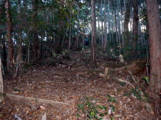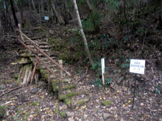 後数百メートルと言うところに林道が分岐する角に新四郎溝の看板が出た ![]() 一寸読みにくいが20mうえに石の溝があるのが新四郎溝で山向うの田に水路をがあった話だ 余談だが、新宮山彦の山仲間もこの話をご存じで何処かの水路トンネルを探索途中だそうな ヤマレコに、林道から上の三角点まで踏み跡が濃いのは、水路と関係が濃いのかな |
