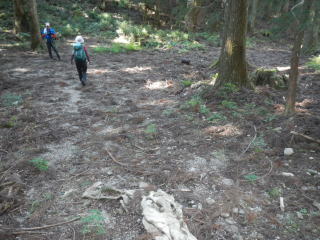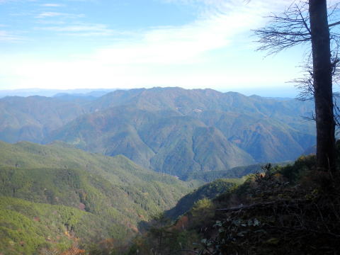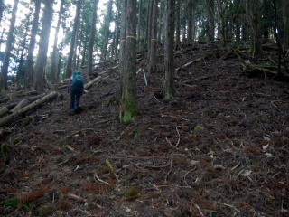 | 白見山には尾根を通し登る 踏み跡やマークは薄く、初心者はルートに注意がいるだろう 雑木の切り取りなどもない ![]() 暗部に下りこむ所に見晴らしが出て、大雲取山だろう電波塔が見張らせた 暗部には馬酔木のブッシュで道はまるで見えないしマークもない 肩につけていたクマ避けの笛が気づけばないほどのブッシュだ Gさんは上手く踏み跡をぬう 下りきれば斜面登りは急傾斜でふー 登り切れば林道が出る 参考にした記事はどれも林道のことは書いていないがコンパスでは白見山方向に林道はある ![]() 林道は白見山下まで続いている 尾根を外すように思うが林道を信じ、林道終点から直登はできるが、回り込むように踏み跡道で登った 少し遠回りでマークも少ないが傾斜の緩いように踏み跡道は登る 地形図に出る山抜けが出れば、白見山の最高見晴らし場所だ |