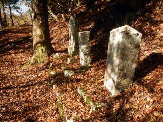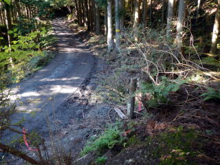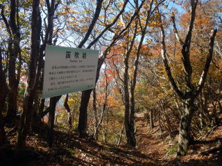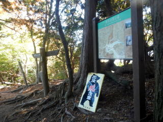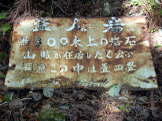 ハイキング道整備時代に残した盗人岩のことの道標が落ちる