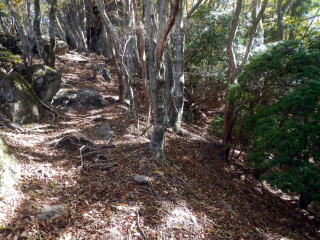 登山道を登る。途中の小ピークは越えてみたが見晴らしはない