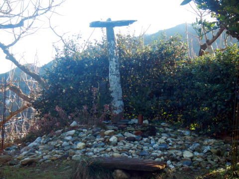 | 次の見どころは少し離れたところにある頬切地蔵です 道標がありほそい道を100m程度行けば東屋と頬切地蔵が現れます ![]() 頬切地蔵と呼ばれますが釈迦、大日、阿弥陀如来様が三面にまつられています 目や皮膚病にご利益があるとか 又身代わり地蔵様でもあるとか 自然道になった階段を登ればまっとう岩が出ます ![]() 三谷坂の見どころはここで終わり、ひと登りで笠松峠に出ます 六本杉への取り付きで一休みです。若い3人は息も切らせませんがふー、いい加減汗が出ます 少し生えこんでいますが通るに問題はありません 六本杉は町石道との出会いです 六本杉から尾根通しの道を登ります。マアバリエーション的ですが道は測量されています 取り付き 尾根道 133丁分岐と出合い小都知の峰へと登ります このピークには3つの名前がある 小都知ヶ峰(おづちのみね)とも神武峰(じんぶほう)とも又は点名から大筒ヶ峰が想像できる。 三角点名をAIで検索すれば間違った結果が出た ![]() AIは四等三角点と答えるが、点石は二等のものです 点の記も以下を書いています 山頂の三角点は 等級種別 二等三角点 基準点名 大筒ヶ峰 北緯 34°16′02″.2991 東経 135°31′53″.7841 標高(m) 683.44 AIはマダマダ信頼性は薄い |