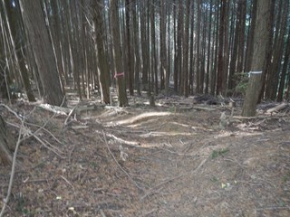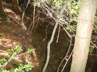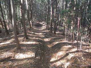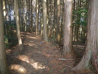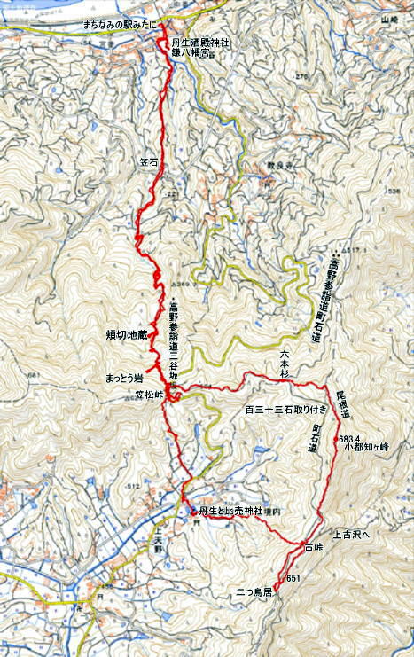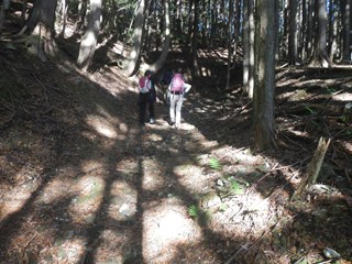 | 昼食を楽しみ、二人の女性の方には、珍しいお菓子や高級ビスケットを頂きました ふー満腹 尾根通しで二つ鳥居に向かう 古峠ではすぐ横が町石道で次のピーク651を越え二つ鳥居に出る 東屋からの天野の眺め 今日のメンバーは非流行のコースを好む 三谷坂の下りの滑りの予備練習かW、古峠から丹生都比売神社に直下道を下ることにした 滑りが多いコースで知られています 約束事は滑り転げれば笑うことです W ロープなど張られているところがある 最初はルンルンですが、ロープが出て落ち葉も少なくなり用心をしたが、 一番にお尻をドスンと着けたのは私です 笑えーーーー 私はもう道横に逃げたが道に準じれば、あらーー痛そう 笑えない 田の横に出る 道は整備があった |