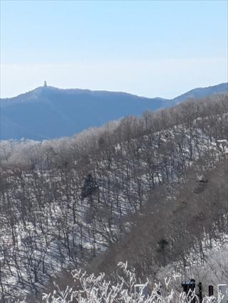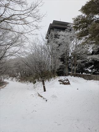 登山口の護摩壇山スカイタワー駐車場に向かう![]() まだ車は少なく余裕で止められたが、ドアを開けて踏み出せば、運転のシューズではオッと滑る |