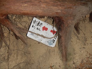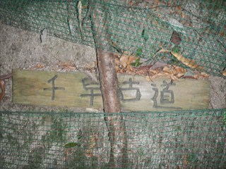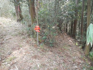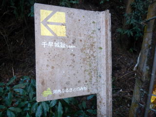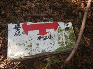 | 谷に登れば測量杭がでた この谷は道かと地形図を見るが、GPS確認では位置がずれるが、GPSのずれと思った そのうえで、堰堤が出た。あらら 小動物の跡を追った 一人あえぐショウタンだ 直ぐ上に、これまたお世話になる方の道しるべが出た 今日はここまでと、踏み跡で千早古道に引き返す 地形図道が出た これが、千早洞ができる前の道だろう ![]() 電波塔や踏み跡が濃く、最後は山仲間の印が出てわいわい |