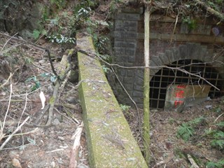 古道らしい雰囲気が出て旧千早街道に下る 千早大橋方面に出て、自然石道標や新旧の道標を確認する ![]() 自然石道標は字が読み切れない 旧千早洞に向かう 千早洞は歴史を感じる 地形図にはこの横から境界尾根に道が出る これが古道の山越えの跡かと、二人で谷に登った |