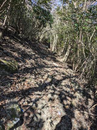 海南市の鏡石山、熊尾寺山、鯛の峰と大野城跡 2026/02/16 と 2026/02/19 ![]() 海南市の長峰山脈の一角に海南市最高峰の鏡石山が有る 今回歩いた遊歩道や登山道の西東の斜面は柑橘栽培で山は開かれているが今回の尾根は自然状態で残っている 詳しいことは分からないが、市町村合併が無かったころに海南市が展望台や遊歩道を市民の森として開いたと思われるがさて 何度か登った山域ではあるが、二日に分けて地図の山域を歩き倒木などを撤去してみた 歩きながら気づいたが、モトクロスバイクが山を走り地形図道や遊歩道を走って轍を残しているが どうやら、バイクの方たちが遊歩道の倒木を撤去していたのかもしれない 私の歩いた範囲は轍と倒木撤去の跡があり、歩行者は通れたのかもしれない その後倒れた倒木が数か所あったが、倒木は撤去した 手でとれるものは手で取り、ノコギリを使うものは使った |