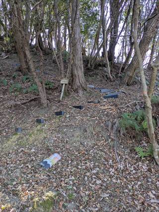 | 2026/02/19日 熊尾寺山から大野城跡 上をクリックでヤマレコ記事に飛ぶ 👆 体調も整い倒木処理に向かった リュックには撤去に必要なもの等を入れ久々に重いリュックだ 一年一年老いを感じるがマア山は楽しい 取りつきは雨の森からだ、前回の下見で感じた倒木を撤去するが、主に熊尾寺山巻き道です 一か所、引っ張れば落ちる大きな枝が有り、引き下ろしたがロープを忘れ体をぶら下げて引っ張った 体重が役立つ荒業だ 汗、ヘルメットは付けている ![]() 巻き道には数本の大きなものが有ったが一応撤去できた よくよく考えて状況を山から見れば、モトクロスの人が倒木を撤去した道かもしれない 熊尾寺山北の西光寺越しに出る 鉄塔が有り、地形図を見れば東側にも破線が書かれているではないか 行ってみようとバリエーション好きが頭をもたげた ![]() 破線道は管理道のようだ これは道は良いだろうと地形図を見れば熊尾寺三角点に登れるようだ しばらくは道が良いが、道は流されたのか斜面に成り歩きにくいが道は残る 一つ目の鉄塔が出る その先で道が分からず、電線下を歩けば次の鉄塔に出ると雑木の中に入る ![]() このままではと先を見れば道が見えた 鉄塔の何処かに道が有ったのだろう 道に入る ![]() 少し大きめの鉄塔が出て斜面は広い 今日は天気が良く、長峰山脈の山々が見張らせメチャ奇麗だ 黒沢山、生石山、大峰山に高野の峰の眺めは素晴らしかった 鉄塔から熊尾寺山に道が上る 山頂に突き上げた ![]() 二等三角点 点名(三角点の名前)引尾です 山の名前は、熊尾寺山です 北緯 34°07′58″.3507 東経 135°14′12″.5921 標高(m) 542.91 |