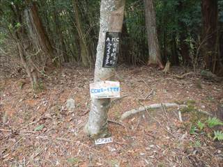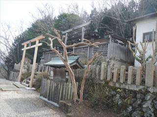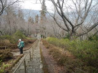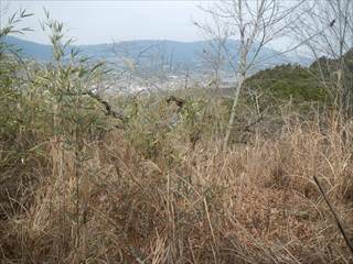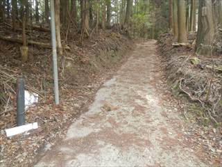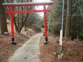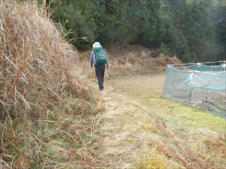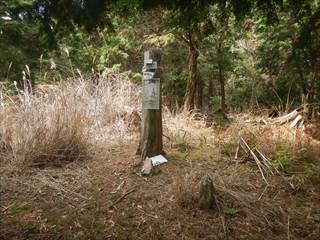 山頂の台地を回り込むように神社の境内に下る 境内は貸し切りでした ユックリと境内を楽しみ手抜きの参詣だ 桜がメチャ奇麗そうな境内だ 長い階段を下り三平神社の案内で下る 三平神社はお稲荷さんらしい その横から登山者が多かった時代の面影を残す道に下る 落ち葉が積もり利用者は激減しているようだった 書き分けるようではないが、笹やススキがブッシュを作る 道通り行きにくく少し道をそらしたが、マア問題はない 地形図に乗る道通りだ ただゲートでは無い塞ぎヶ所が出た ここは遠回り道となった この付近を少し手を加えれば良いコースになるだろう 地図を見ながら生活道を下る 途中に国城山や三平神社の案内とカフェ木暮日の案内が多い 時間余裕があれば木暮日で一休みもいいかな 下りばかりも足には負担が出る私だが、リーダーの後でワイワイと山を楽しむ下見だった 小さな四等三角点に立ち寄るリーダーは流石に山女だな |