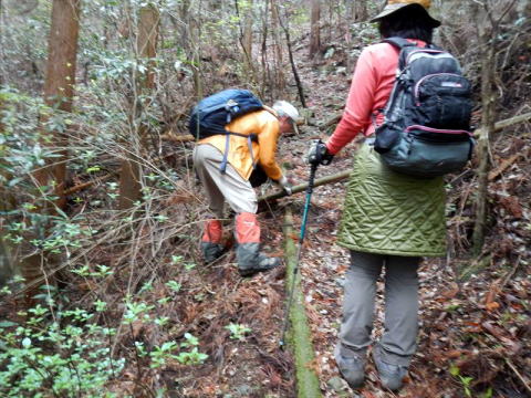 | 曼荼羅尾根の点検と過去の思い出 2026/03/12 二人 ![]() 曼荼羅尾根は次にリンクを見ていただくとお分かりと思いますが 大峰曼荼羅会の皆様が踏査して一般的な登山道に整備しました 地図は船堂から推しくして、コウヤトウフの制作の材料や製品を上げ下げしたルートではと推測します 牛や馬の背に豆や製品を載せ登ったルートではないだろうか 六尺道が上手く尾根あります 人は主に曼荼羅尾根を、馬や牛は栃谷から九重越しを通ったと感じる 皆様の推測も尾根餓死します |