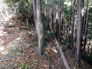 段々と尾根は地形図以上に細くなるが、モノレールがその怖さを隠してくれる ビビりのショウタンも、鈴さんの恐がりもモノレールに助けられながらルンルン ![]() 見晴らしが出ればそこは、白鬚岳のビューポイント、ここから登山者として秋の白鬚岳を見た人は少ないだろう 山頂では分からない切り立った崖の上に有るピーク 完全な自然林でレールは終わる 見上げれば、白鬚岳登山道下だ ![]() 尾根でお昼を食べるというより行動食を食べる 流石、お料理上手な鈴女、お弁当は完璧だ 山上から女性が二人降りてきた 下で女性の声がと??と思っていたという 私たちも通常登山道を下る事にした ![]() 振り返れば白鬚岳は美しく尾根も美しいが 4ヶ所のピークを超えるとピーク数を言う鈴女 そのどれもが、傷みが出て、ショウタンの足では下りが難しい ユックリ安全に、遅い下りに合わしてくれる鈴さん ![]() あんなところが有った?、ここは覚えている 10数年ぶりの二人の記憶はあいまいだ 小白鬚に出た 時間に余裕が有れば小普賢岳から、東谷の登山口に杣道が有った事を記憶していたが、時間の不安が有る その時の木の記録だ ![]() 8回も登ったという鈴さんは、今回で白鬚岳は最後とすると言い、景色を楽しんでいる 小白鬚はシロモジカエデの落ち葉が美しい 東の谷分岐に向かう。 東の谷登山口まで2.8km |