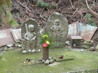 尾根を西に登り、城ヶ峯に向かう 途中に竜在峠へのパス道の案内が有る ![]() 城ヶ峰取付きには大きな案内が有った 城ヶ峰は古城跡だが誰の城とかは分からないようですが、素人でも堀切等から城だとすぐにわかる 勢いを失った熊笹の中を歩けば切掘りから登り平に削られたピークが出て、もう一度下り登れば、三角点が乗る城跡に出る ![]() 三角点の記 山名 城ヶ峰、三等三角点点名 城ヶ峯 標高 752.25、設置、明治36年7月2日 個人山 所在地 奈良県高市郡明日香村大字畑226番 先ず、竜在峠に下る 道はない ズズズと下ればその下に竜在峠が出る 掘割に旧兵隊さんの墓と道標、入り谷側上の小ピークに登る 此処に金毘羅大権現の祠跡が有ります。 ![]() ![]() 当時は大きな金毘羅宮か、次の竜在辻の石表にこんぴらの字が読み取れる 林道化された道を竜在辻に向かう 道標は冬野方向だ 竜在辻には東屋の休憩所と道標、古い石柱の道標が有る 東屋には本居宣長の旅日記の1頁と天武天皇の和歌が扁額であげられている ![]() ![]() み吉野の耳我の嶺に、時なくそ 雪は降りける 間なくそ 雨は零りける その雪の 時なきが如 その雨の 間なきが如 隈もおちず 思ひつつぞ来し その山道を と大海人皇子時代をに越えた時を思い歌ったと言われる歌をあげている また石柱には 中央にこんぴら、右たふのみね 左よしのやまが彫られている 道標から冬野に向かう、道はやや下り気味なフラット道だ 途中に鹿路への分岐道標が有る ![]() 冬野は(とうの)は綺麗な集落だが常住者はいるのか分からないが綺麗だ 古くは30軒の家が有ったとか 電柵を超えて村に入り道標前から波多神社に登る ![]() 宝来の鈴さんは若いころこの地を訪れて、村人から多武峰はこの上だと聞いたと言う お寺らしい建物の上に城跡を感じる細長いピークが有る そこが多武峰と指を指したと言う 登ってみると、一枚の山名板が有って、知る人ぞ知る多武峰ピークだ ![]() ミヤマカタバミが多く咲き人が滅多に来ないのか踏み跡は無い |