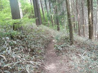 境界杭に従ったが、有るが無い、やはり無いのかと気を落とせば、祠裏が見えた 御所台の森の祠と、祠に向かう ![]() 立派な祠は、榊の備えも立派だし、行者のヒデがお堂内に何枚か有った 地形図の建物マークはこのお堂だった ![]() 一旦林道に出て、次の目標点、四等三角点、滝畑に向かう 取付きはと思っていると、ハイキング道道標が出た 細い道に、バイクの轍、前からくれば避けられない、来ないで ドキドキ ![]() 途中から植林内に逃げ、境界杭に沿って登った 倒木が有ったが乗り越え巻いた 尾根に突き上げれば、四等三角点 滝畑 909.3mが出た 此処で食事と倒木に座り込んだが、虫眼鏡で見なければいけないような小さな点が動く アララ、ダニだと虫よけスプレーを振りかけ退散退散、回り込んでハイキング道に出る ![]() 熊笹内に踏み跡が有り歩きよい 道標の所まで下り林道に出て、座りよい切株に腰を掛け、おむすびをホウバッタ 少し、休憩をして、忘れていたあるある探し、ふと先に目を凝らせば、有りましたな、 常識では、ブッシュで落とすだが、快適な舗装路に有った ![]() |
