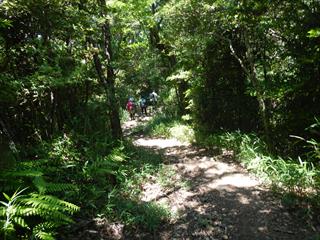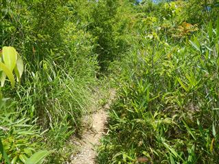 | 道成に登れば、地蔵林道から落合方面に道標が有ります 小さなピークを越えれば、六十谷方面との分岐道標が出ます ![]() フラットな道から、掘れ込んだ道に成り登り切れば六角堂です 見晴らしは良い六角堂はスルーしました ![]() 少しで青少年の森です 青少年の森は見晴らしは良いが、日影が少なく日陰下が満席なら、シートを広げなくてはなりません 椅子は全て直接の日が当たります ![]() 日陰に座り込み少しロング休憩です 東尾根道に向かいます 雲山峰との分岐に道標が有ります 直ぐに、地蔵山取付きが有りますが、最近は図根三角点位置をピークとするヤマレコの影響で、最高所の地蔵山に行く方が少ないです 昭和の休憩所跡が今も残る所が、地蔵山ピークです ![]() 途中に急坂の道と緩やかな道の分岐道標が無くなりました 急坂の道は急坂ですが、私的には安全度が高いと思っています 緩やかな道は痛みが出て、雨後などは滑れば谷側に落ちる 急坂の道は太いロープが補助されている 最下部で両方が出合う |