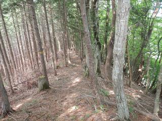 荒神岳に向かう時に見つけておいたコアジサイの群生地前に車を乗り入れて、踏み跡らしい所から尾根に取りつく ![]() コアジサイも綺麗だが、ウツギの花も清楚な白い花を咲かす。細かい分類はできないが空木だ (;^ω^) 小さなピークは車道横に有る。 登ったが有るのは踏み跡らしい物があったのみ 直ぐに車道に出てしまった ![]() 次のピークへの取りつきの擁護壁のコンクリ坂だ 登山者か測量か分からないが、テープが有った 多分古道だろう六尺道が斜面に有り、これだと進むが斜面の凹み、谷部分はっ道は流されてない 事故ってはと、尾根に取付いた ![]() 古道は回り込んで1092mのピークに出ていたようだ 尾根はそこそこの急傾斜だ 小枝に、今日はここまで、また回収に来ますと小さな目印が有った 古道を探索した方だろうか、新しい感じだった 少し大きな境界の印が、山の字と共に有った 野迫川村と高野町の境界か? 道は続く ![]() フト見れば、右手の下に道が出た 確かめてみれば古道だろうが、擁壁の上すれすれに有った 削られたのだろうか、写真のようなところで消える その先で又道が続く ![]() 再度尾根と道が分かれる 尾根に登れば一等三角点に出るはずと左手、西の巻き道を進む 丁度、三角点の真下だろう所に二里二丁の丁石が出た 丁度区切りの良い、ゴロが良い二里二丁地点に丁石をたてたのだろう ![]() これで古道と言う事がハッキリとした 引き返して三角点い行こうか、直登しようか迷ったが、経験から進み尾根から山頂に出ようと、古道を進んだ すると しまくら竜王と書かれた石碑と、荒神さんの石仏が出た 木の鳥居の腐りぐわいから見て昭和の終わりごろまでは祀られていたように感じた ![]() 小さな木だがコアジサイが少し咲き香が凄く匂う 梅も香は凄いがコアジサイにはかなわないだろう そのまま進めば、尾根に出て見晴らしの場所から尾根を登る この尾根は経験済みですがフー汗を流す |
