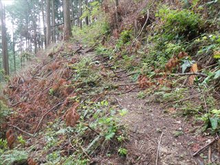 | 中葛城山山名板付近で昼食と向かうが、日影が無く風もない 行動食を入れ、風通しが有る所で食べようと、頂いたお菓子をホウバル間に、三角点北山に行ってみた クマザサ中の踏み跡を足元注意で歩けば、3分で着いた 記憶の範囲の位置に有ったが、五條住民に中葛城山と訪ねても、分からないとの返事が有ったと聞いた 帰って、点の記から点名や所在地、所有者など調べれば、所在地は 五條市北山と有、点名は、三等三角点、北山でした どうやら、中葛城山は登山者の名前のようで、山頂を見れば、葛城山看板裏のピークのようだ ![]() 久留野峠への下り階段は痛みが激しく急傾斜で、膝関節の不都合がある私は少し階段を外した 下りこんだ久留野峠は風通しが良い通行者も有るが構わずおむすびをホウバッタ 此処でも、おなじみさんが通られて話がワイワイ この登り返しも私の足は悲鳴を上げる 良いのか悪いのか、植林内の踏み跡から地蔵前に登り切った ![]() 地蔵横からも踏み跡が有るが、笹が生えこんだコースとかで夏は不向きらしい 千早園地迄歩き、千早園地に向かう ![]() |