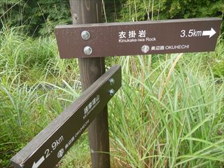 林道を歩き林道が分岐する尾根先から尾根に入る ![]() 実際には左林道30m程先から尾根に乗り少し登れば右手の踏み跡が道なのかもと右を巻く ![]() 伐採された上に道が伸びる 見晴らしの向こうに城ヶ峰のドームが見えた 林道に出た所が衣掛石の出合だった 帰りは尾根芯を通る ![]() 絹掛石の説明板 ![]() |