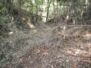 雌岳から下りこみ登り返しは急坂だが西側に巻き道が有った 谷から尾根に登れば少し倒木が出て、巨木の山桜の有る所が地形図一本松だ ![]() 地理院地形図を拡大すれば巻向川から道が伸びている 日当たりも良く明るい。昼食休憩とした 久々に、栗の渋皮煮を頂き食べれば頬が落ちる表現の美味しさだった 尾根を登る 最初に来たコースと少し離れたようで、放棄バイクは無かった ![]() 笹のブッシュは通良くなっていたが倒木は少し邪魔をする 各々通りよく尾根を登れば、柳本竜王社方向と笠不動方向の分岐道に出る ![]() 最短は直登だろうが、強引に笠不動側に向い回り込んで山頂、南城に出た 倒木が多く少し道も悪いが時間は思っていたより近い ![]() 地形を見れば堀切も有り、十市城は堅固な山城のようだ 日曜日は登山者も多い 見晴らしは良くハイキング登山に良い山だ ![]() 三角点の人気は薄そうだ 少し点の記を書いてみよう