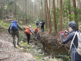 | 広域に会員がいる炉端山友会は彼方此方から車で来る方が多い 今日は道の駅二上パーク大麻に集合した 電車で集合の方は車組がお迎えに行った 9名が揃いスタートだが集合、コース注意はミヨコ池取付きで行う ミヨコ池横から細い小道に入り、大和五社瀧に向かう ![]() わたしの知識ではコースは書き表すのは難しい とにかく書いてみます 小さな分岐から沢に降りるが距離は短いが、細い棚をヘツリ瀧前に行く 瀧は小さいが、古くは行場だったのだろう、祠に不動明王、滝下に五社瀧王の石柱が建つ ![]() 引き返しコースに出て下ればゲートが出る グールルで調べれば、ゲートを開けて葛木倭文座天羽雷命神社横に出る 道標には二上神社口駅と二上山の案内が有った 主なコースか広い道は踏み跡は濃いが、階段は痛み鉄筋杭が出て歩き注意で、階段も長かった 途中の休憩場所は二種類の道標が有り畑、春日神社方面に入る ![]() 道成に入れば新しい休憩場所から見晴らしが出る 古い看板は雄岳六合目と有った ![]() 見晴から下る 案内看板が有る分岐に出てここから杣道に入る しばらくは杣道が続いた ![]() |