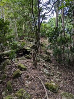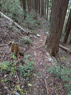 ![]() 白馬林道に下る分岐には道標は無い 最初の暗部にテープがやや多く巻かれている 細い踏み跡をくねくねと下る 風化した石がスベル感覚の所もある 慌てずユックリと下った テープで何かが囲われていた 高野街道時代の石標が残っていた 右やまみち 左 高野みちと書かれている どんどんと下るが道はクネクネ 林道登山口に出る |