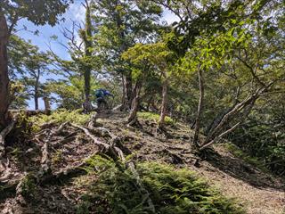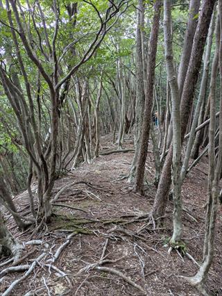 木梶林道から赤ゾレ山、木梶山周回 2025/09/10 3人 ![]() 久々に木梶林道から赤ゾレ山、馬駈け場、木梶山、梅尾北側尾根を周回しました 木梶林道は舗装がされていますが、未舗装時より落石や倒木が増えていた やや雑木も道にかぶさる所もあり記憶よりは荒れていた 赤ゾレ山の沢越えの登山口には道標があって分かりよいが、登山者は少なそうだった ハート池、馬駈け辻、木梶山への尾根は分かりよいが、雑木が伸び、見晴らしは少し悪くなっていた 梅尾から木梶川に下る尾根は相も変わらずに厳しさが残り、マークは少なくなっていた 最後の下りは相も変わらずに急傾斜を感じる植林で注意がいる 私は楽しいが油断は禁物だろう 山行記録のページへ をクリックでヤマレコの記事に飛びます 👆 |