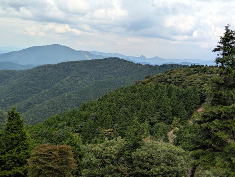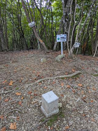 木梶山が見える所から、その向こうには高見山や、室生の鎧岳、兜岳等が見えだす ![]() ![]() 大峰よりも女性的な山の景色と感じる 台髙の山々は美しいい 木梶南峰を越え、ひと登りで木梶山に出る 二等三角点が乗り雑木の綺麗な山頂だが見晴らしは無い ![]() ![]() 木梶山二等三角点の記 等級種別 二等三角点 点名は中奥