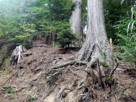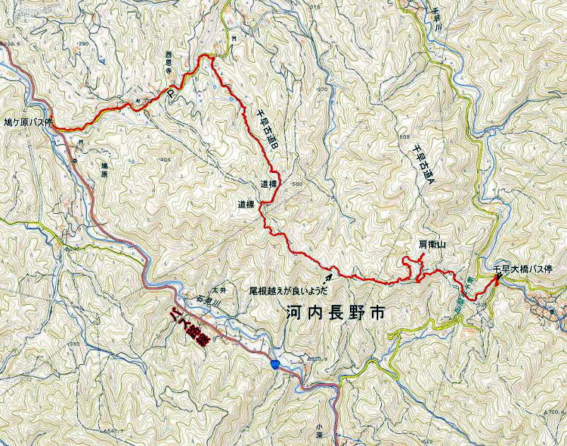 山道に成れば歩きよい小道が続きマウンティンバイクのルートも兼ねてはいたが今はそれを感じない 千早小学校生徒たちが千早古道の道標を作り整備した跡も残る ![]() ![]() ![]() 道にはマークや道標が有りヤマレコなど持てば先ずルート間違いは無いだろう トラバース道で細くなったところもあるが、そこは慎重に歩こう ![]() ![]() ![]() 千早古道の道標が出る所はトラバース道と尾根越え道の分岐で道標下にもどちらも行けると書かれている通りだ トラバース道は一年で生えこみ、二年も放棄すればササが密集する シルバーさんと、次回からの整備は山越えにしようと話し合うが、何時できる事やら 道成に歩き肩衛山分岐道標から肩衛山に向かった 久々だが、鉄塔管理道なのか通りよかった ![]() ![]() ![]() 途中から尾根に登るが直ぐ上が肩衛山の山頂だ ![]() ![]() 取りつきと山頂 引き返そうか回り込もうか、新しく尾根で行ってみようと地形図を見る 破線が載るコースが面白いと向かったが、コンパスをとらずここだろうで行けばアララ、尾根違いだった ![]() ![]() ![]() 破線は外したが千早古道には出た 正しい分岐を確認して千早大橋に向かう ![]() ![]() ![]() |