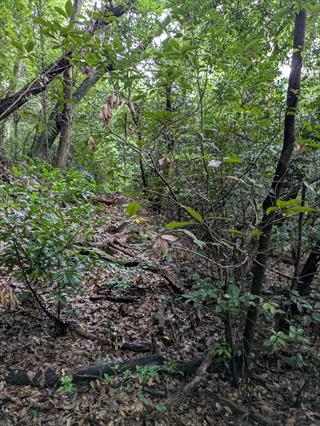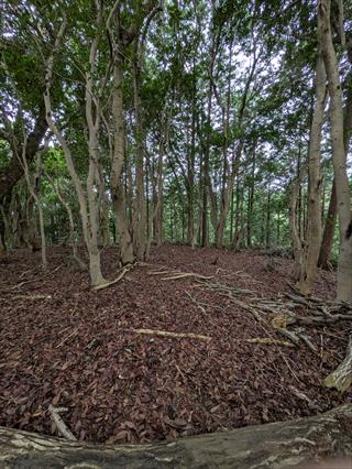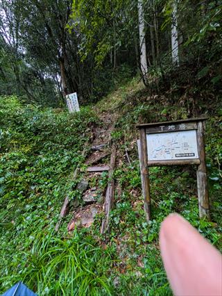 他の山を計画していたが雨情報が出る 単純なコースの山だったが、渡渉が二カ所ある 家の前の小川を見れば、通常の二倍の水嵩だ 一応中止で、午前は雨は大丈夫と紀の川市の元気の森から派生するマイナーな尾根を登る計画を立てた 駐車は根来寺横に有る民俗資料館前に止めた ![]() ![]() ![]() 根来寺参詣料金所前から墓地方面に入り、墓地手前から根来寺大塔(国宝)裏のフェンス沿いを行く 二体の石仏が有る。フェンス沿いには道はないが、行き詰まる所に山肌に古い道が出る 全く整備は無い 道成に登れば広いU字谷中を登る。道跡は感じない ![]() ![]() ![]() U字谷が詰まると右手の尾根に登るが、ここで現在地を見ないとピークまで出てしまった 見通しが効かない山で注意しないと尾根を外す事になる ![]() ![]() ![]() 尾根の状態が良くて(左)この程度です。 尾根芯を通れない時は尾根を外し斜面を通った(中央) 植物は少ないが少し大きめの葉っぱが有った 一瞬クリンソウかと思ったが、よく考えると湿気を好むクリンソウは尾根には生えない💦 |