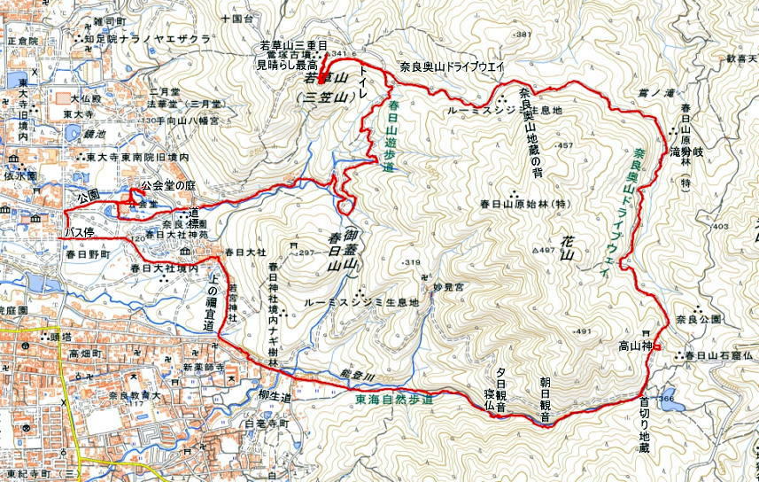 ![]() 所属会で若草山と春日山原始林を一周した ハイキングだが奈良奥山ドライブウェイは未舗装の道でハイキング道も兼ねている 有料の道だが歩行は無料だ。緑の濃い自然林は素晴らしい リーダーは山にも詳しいが歴史にも詳しい まるでガイドさんのように詳しい話をしてくださる このようなところは急ぐ歩きより景色や自然を感じ歴史を知るほうがいいのかな ![]() |