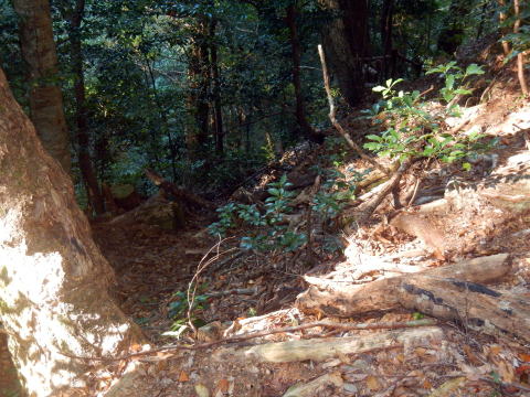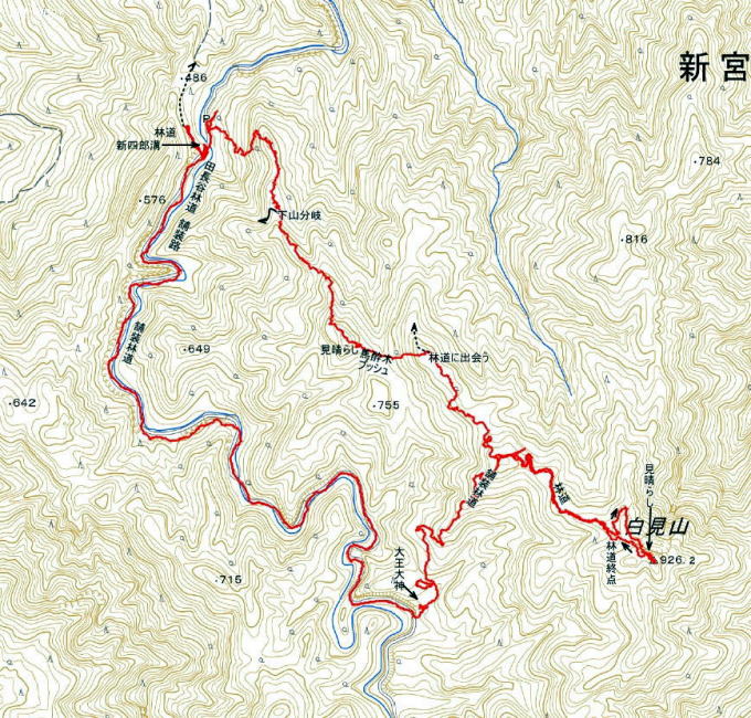 | 白見山には尾根を通し登る 踏み跡やマークは薄く、初心者はルートに注意がいるだろう 雑木の切り取りなどもない ![]() 暗部に下りこむ所に見晴らしが出て、大雲取山だろう電波塔が見張らせた 暗部には馬酔木のブッシュで道はまるで見えないしマークもない 肩につけていたクマ避けの笛が気づけばないほどのブッシュだ Gさんは上手く踏み跡をぬう 下りきれば斜面登りは急傾斜でふー 登り切れば林道が出る 参考にした記事はどれも林道のことは書いていないがコンパスでは白見山方向に林道はある ![]() 林道は白見山下まで続いている 尾根を外すように思うが林道を信じ、林道終点から直登はできるが、回り込むように踏み跡道で登った 少し遠回りでマークも少ないが傾斜の緩いように踏み跡道は登る 地形図に出る山抜けが出れば、白見山の最高見晴らし場所だ |