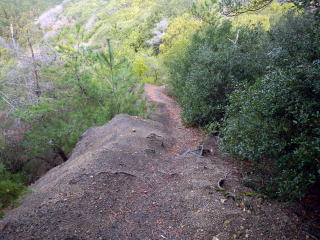 | 後は小道を下る 整備は良いとは言えないが通るに問題はない ![]() 途中の凡伝山分岐から凡伝山に登るルートはややワイルドで面白かった記憶が残る 駐車場への戻りで、団塊の世代の方と立ち話で山の情報を得た 今日登った尾根は、マッタケの最盛期には100万単位の入札でキノコの権利を得たところだとか 今も安いが入札があるという 途中の松は手入れが有った もう二度とは登れない尾根だと反省をした |