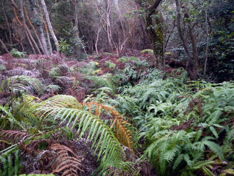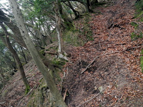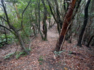 | 引き返し、見晴らしの良い馬の背尾根を下る 尾根から30m程度斜面を下り林道に出る 植林内の道は下り良い ![]() 大山への案内はない 林道で滝の池の滝尻の三叉路を大山に浮かう 林道は少しぬかるむ所も有ったが、通るに問題は無い 林道分岐を確かめながら、鉄塔道標が出る所から尾根へと取り付く 見落としやすい、注意がいるだろう ここから尾根まではなかなかワイルドの管理道です 下りに利用するなら険路と表現したいトラバース道でを登る ![]() 巻き道に入りトラバースで登るところは〇危だ ![]() 巻き道に入り巻き登れば羊歯の中の道を探りながら大山を目指す マークは少ない 大山は三角点大山谷が鎮座する平らなピークで私有林です ![]() 三角点点の記は 等級種別 三等三角点 基準点名 大山谷 北緯 34°20′41″.1754 東経 135°20′25″.7207 標高(m) 382.73 所在地 泉佐野市上之郷 私有林内 意味が解らない白峯はどうやら個人名かGP名のようです AIで探ればあちこちに似たようなものがあります 縦走路に向かって登る |