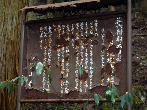 道なりに歩いてゆけば案内道標が出て、細い道の斜面を登れば箕六(みろく)弁財天が出る 箕六弁財天社はお祀りをされているが痛みは激しい 地域住民が少なくなった事が原因かも 看板には888年に安芸厳島神社から勧請し創建されたとか、 裏山は自然林保護の指定地らしいが看板は読めない 特筆は600年の桂の木が残っっている ![]() ![]() 社そのものは痛みが激しい このまま朽ちるのは少し残念だ 県が文化財指定をして残せたらいいと思うのは私だけかな 下りには怖い階段で社務所のところに下った ![]() 社務所横から測量跡がある小道で林道終点まで下り、その先は道だろうと感じる部分をトラバースで小池を目指す 、 |