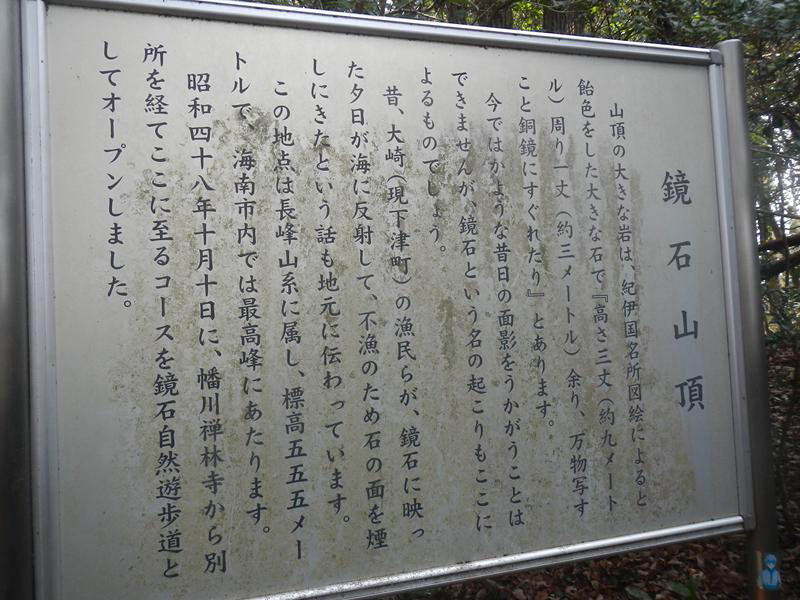 | 尾根中央で熊尾寺山、鯛の峰、鏡石山と歩く まず、熊尾寺山には二等三角点が有る 古くからの登山経験者は三角点を知るだろうが、最近始めた方はご存じないだろうと思う 三角点について 二等三角点 点名(三角点の名前)引尾です 山の名前は、熊尾寺山です 北緯 34°07′58″.3507 東経 135°14′12″.5921 標高(m) 542.91 ![]() 小さなピークです 下りこめば熊尾山越 (コシと読むのかコエか?) 現下津と別所を結んでいた古道だろう 道は残っていた ![]() 緩やかに登り切れば鯛の峰だが、平らな耕作地跡のようです 海に近い山で鯛横向きな広さを思ったのだろうか、人工的に広げたように広い 測量点544mの位置に山名版が残る 下り登り切れば鏡石山だがその途中西側に鏡石が有る 謂れが書かれている ![]() 今はコケムシ夕日が反射するどころか木立の中だ ただ、生石山の火上石で経験したが、雪が氷り、朝日が当たると見事に太陽光が反射していた 魚が取れないは?ですが反射したこともあるのだろうかと思った ![]() |