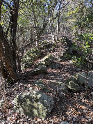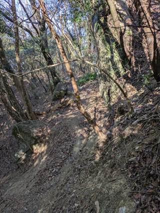 海南市の鏡石山、熊尾寺山、鯛の峰と大野城跡 2026/02/16 と 2026/02/19 ![]() 海南市の長峰山脈の一角に海南市最高峰の鏡石山が有る 今回歩いた遊歩道や登山道の西東の斜面は柑橘栽培で山は開かれているが今回の尾根は自然状態で残っている 詳しいことは分からないが、市町村合併が無かったころに海南市が展望台や遊歩道を市民の森として開いたと思われるがさて 何度か登った山域ではあるが、二日に分けて地図の山域を歩き倒木などを撤去してみた 歩きながら気づいたが、モトクロスバイクが山を走り地形図道や遊歩道を走って轍を残しているが どうやら、バイクの方たちが遊歩道の倒木を撤去していたのかもしれない 私の歩いた範囲は轍と倒木撤去の跡があり、歩行者は通れたのかもしれない その後倒れた倒木が数か所あったが、倒木は撤去した 手でとれるものは手で取り、ノコギリを使うものは使った |