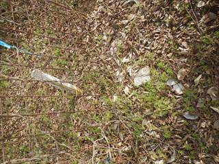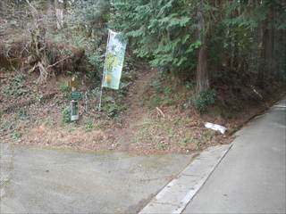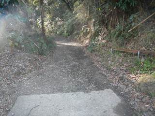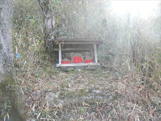 山頂の台地を回り込むように神社の境内に下る 境内は貸し切りでした ユックリと境内を楽しみ手抜きの参詣だ 桜がメチャ奇麗そうな境内だ 長い階段を下り三平神社の案内で下る 三平神社はお稲荷さんらしい その横から登山者が多かった時代の面影を残す道に下る 落ち葉が積もり利用者は激減しているようだった 書き分けるようではないが、笹やススキがブッシュを作る 道通り行きにくく少し道をそらしたが、マア問題はない 地形図に乗る道通りだ ただゲートでは無い塞ぎヶ所が出た ここは遠回り道となった この付近を少し手を加えれば良いコースになるだろう 地図を見ながら生活道を下る 途中に国城山や三平神社の案内とカフェ木暮日の案内が多い 時間余裕があれば木暮日で一休みもいいかな 下りばかりも足には負担が出る私だが、リーダーの後でワイワイと山を楽しむ下見だった 小さな四等三角点に立ち寄るリーダーは流石に山女だな |