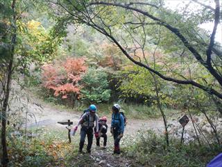 | 目的の取り付きには永楽ダムの堰堤を渡れば近いが、工事中で通れず、大きく迂回して取り付きに向かった コースはバリエーションから入るが、今回のバリエーションコースは先人がコースを開き少ないがテープなどが有った ただ、浮石があり落石の懸念が高いためヘルメット着用を義務付け、安全を優先しながら小さなピークを目指した。 駐車場は広く、トイレの設備は綺麗で快適だ ![]() 目的のピークを見ながら永楽ダムを大きく回りこむ、登山口にした谷は、見た目より登り良い ![]() |