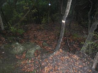 | 駐車場に下る尾根先は急傾斜の丸危だ。少し薄暗くなりコンパスを取るが、テープを頼った。急ぎ足だ 少し大きな棚が左手下に出る所でコース注意だ。 細いヤセ尾根が出ると、その先は○危の下り、テープが打たれていないとコース探しに時間が係るだろう ロープが有れば安心して下れるが、今日に限って持ってこなかった。 慎重に下った。 ここで去年(1914年)単独登山者が滑落して命をなくした。 後100m少しだろう。雨がふりだした。 この尾根先はヤハリ登るにイイが、下りは不向きなコースだ 川の音とともに車が見えた。 下山した所 |