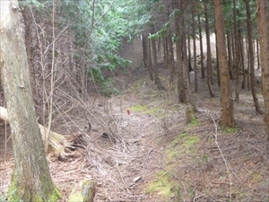 | ダイトレに突き上げる。 この付近も自然林で美しく見晴らせたそうだが、植林が進み見晴らしを隠しだしたそうだ ![]() |