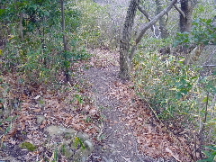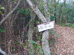 | 少しのアップダウンはあるがルンルン、切立三宝台と呼ばれる付近から和歌山市内の景色は最高だ ↑ 反射板から少し下り鳴滝方面の分岐がある。 この分岐は土取り場経由か岩倉新道経由で同じ鳴滝不動に下れる 鳴滝方面の道標はない。何度付けても取り払われるという |
