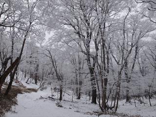 | キレットにビッチリと雪が張り付いた常態は三点支持もたやすく、バランスの悪いショウタンなどはトラバースが楽だが、中途半端な積雪は嫌いな私だ おまけに表層が凍った常態は何時壷足が起こるか、慎重にトラバースだ 私が踏み抜かなければ、女性達にはそれは無い 慎重に蹴り込み棚を作る ![]() 通常のトラバース時間だっただろう。 大日岳の登山口に出た 正面は樹氷が綺麗だ。北西の風が吹雪き模様になってきたが、山頂までは風裏だ ![]() 核心部は無事通過だ。自然と笑みがこぼれる。 |