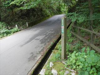 私は、車道を下ってきたが、よくよく地形図を見れば車道をパスする道が有る アララ、読図の甘さに頭かきカキカキ、 車道をパスして車道に出た 私は少し車道横の尾根を歩くことにして、出会いはポールの有る地点、そこで出会わない時は山頂とした |