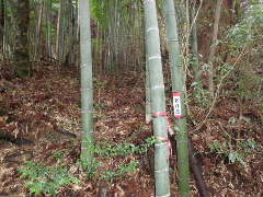 | 小さくテープが打たれている 下って行くと作業用モノレールが出る。途中でモノレールが山肌に下って行く |