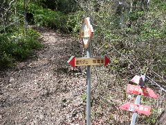 | 和歌山の紀ノ川市打田から池田隧道を越え神通温泉前を通り、犬鳴温泉前を過ぎ、阪和道ガード手前の水呑地蔵寺から小富士山に取付く、小富士山の山肌に延びる階段をひたすら東に登り、階段が終わる所で登山道がテープに導かれるように有る |